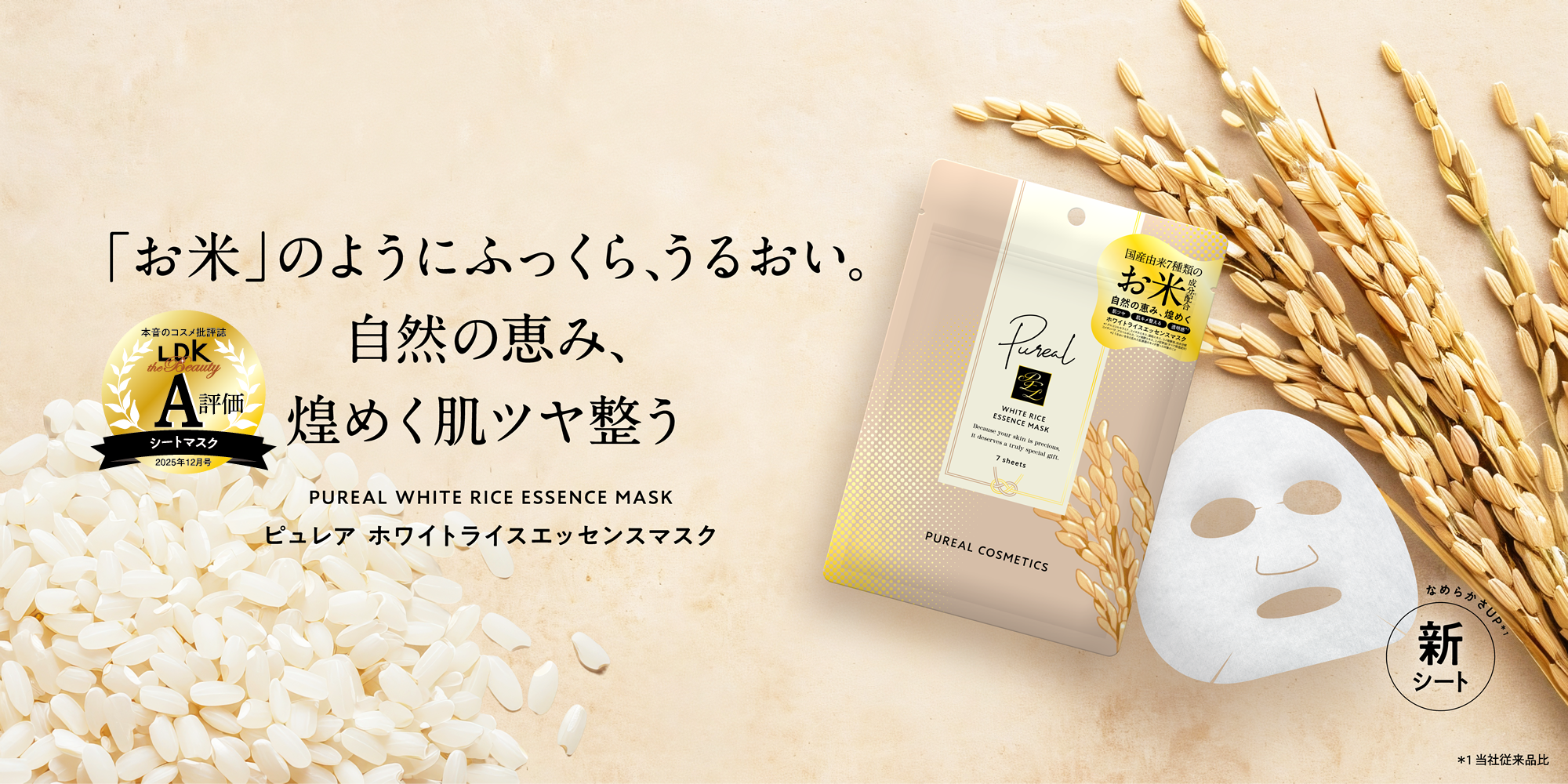 *1 当社従来品比 *3 グルコシルセラミド、コメヌカエキス、酒粕エキス、コメ発酵液、加水分解コメタンパク、アスペルギルス/コメ発酵エキス、コメ胚芽油(すべて保湿成分)